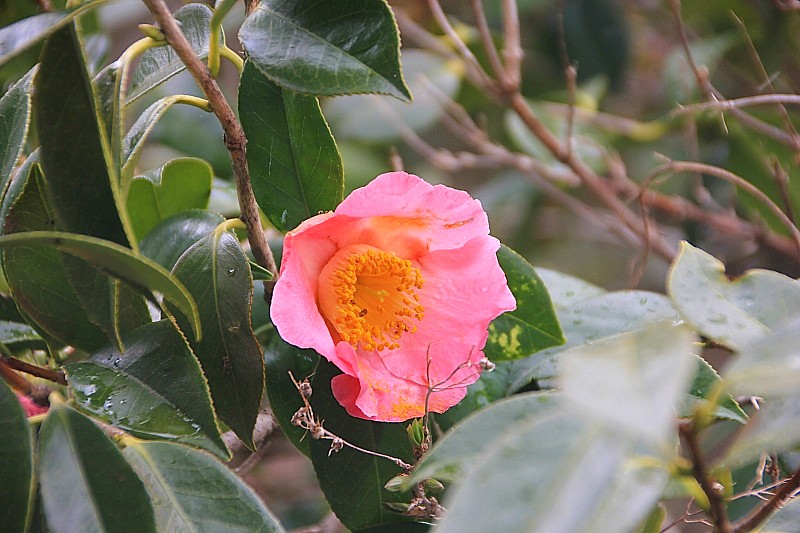 | 17.03.21 雨中の開花、ヤブツバキ |